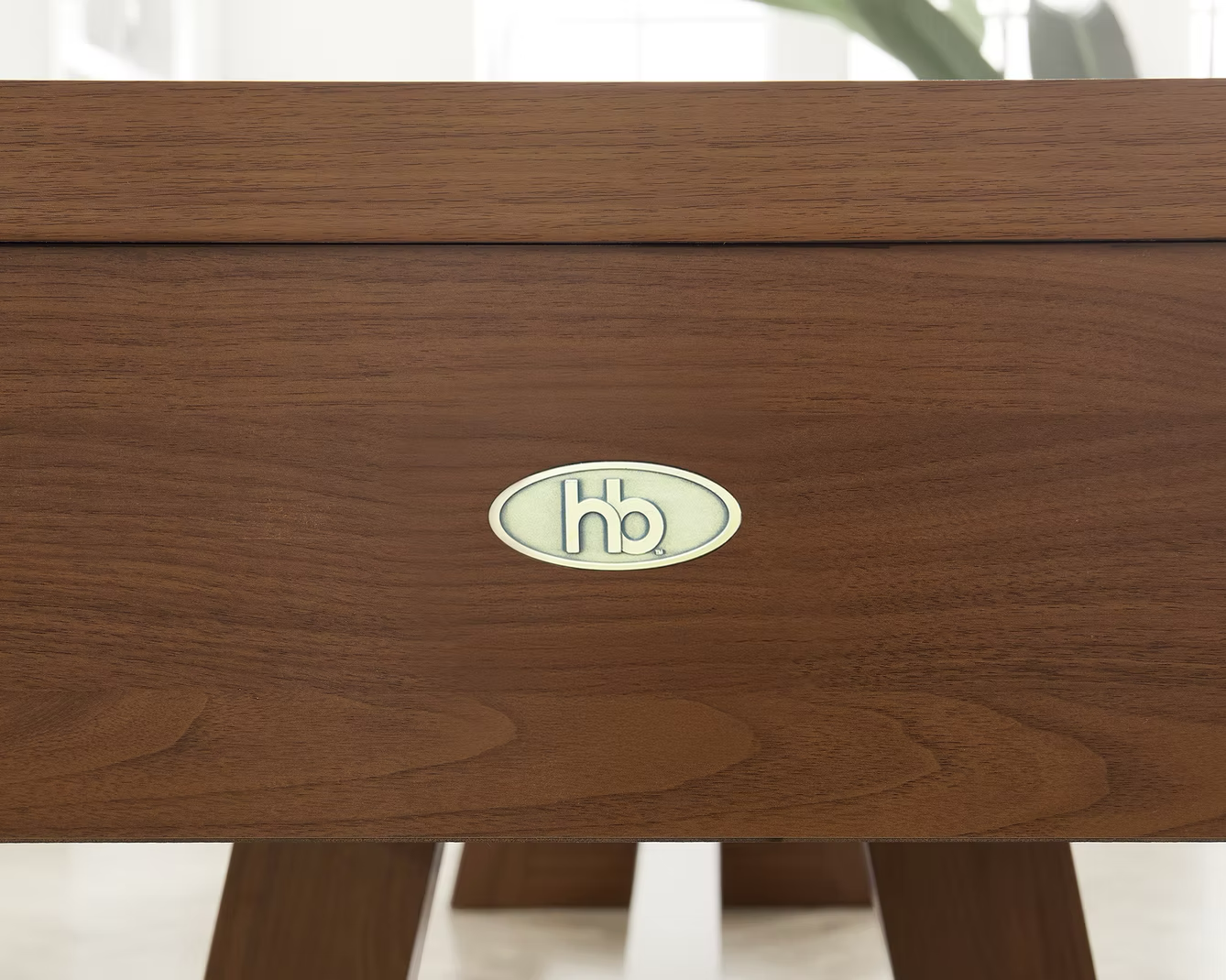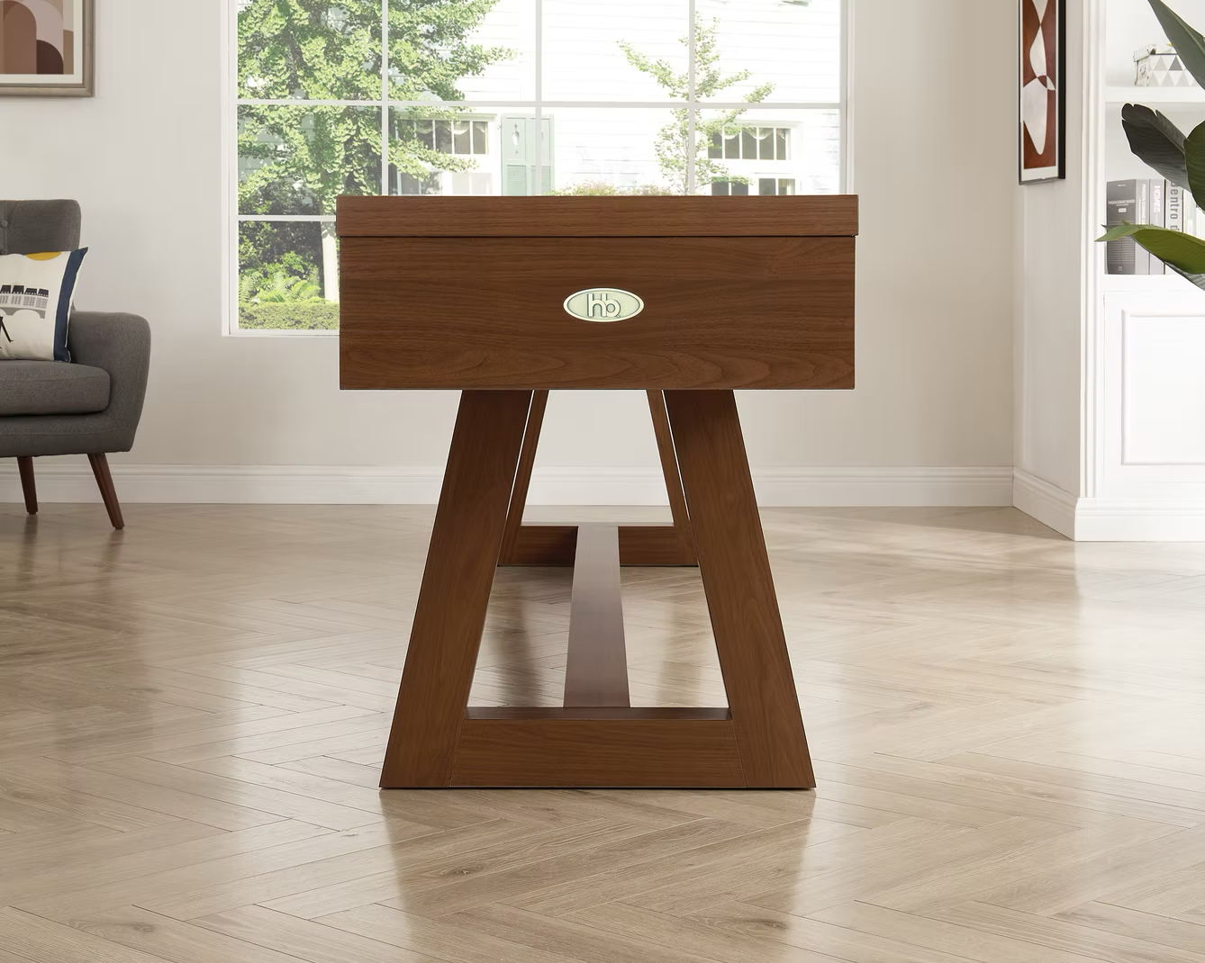 • This shuffleboard table is meticulously crafted from engineered wood, melamine board, and vinyl, featuring a rich Coffee finish that enhances its sophisticated appearance while ensuring lasting durability. The playfield is constructed from high-quality melamine board, delivering a strong and stable surface for seamless gameplay. Combining style and performance, this table offers a premium playing experience with its natural elegance.