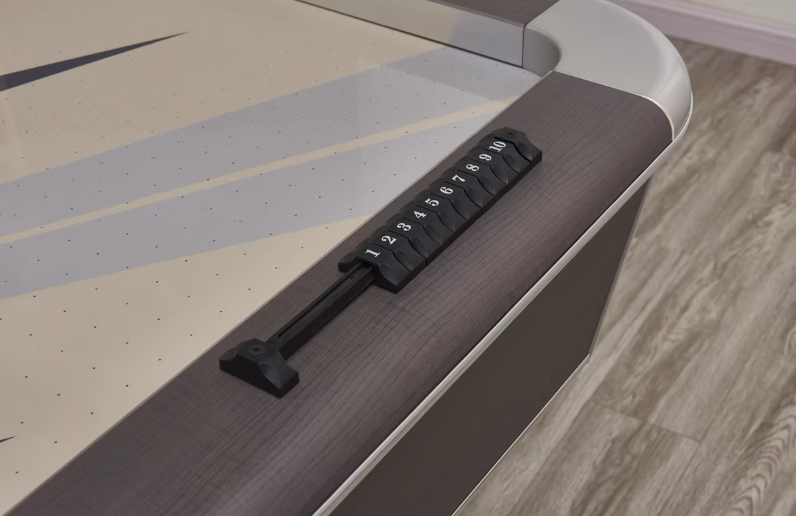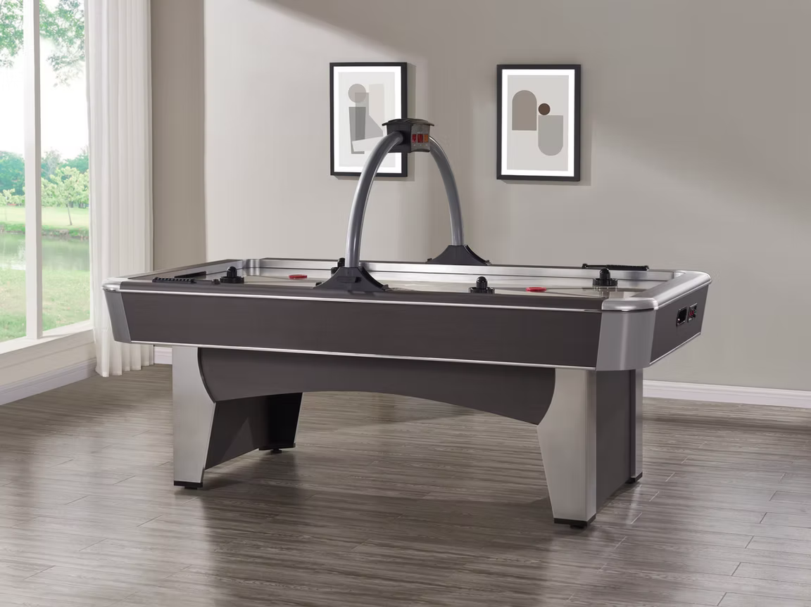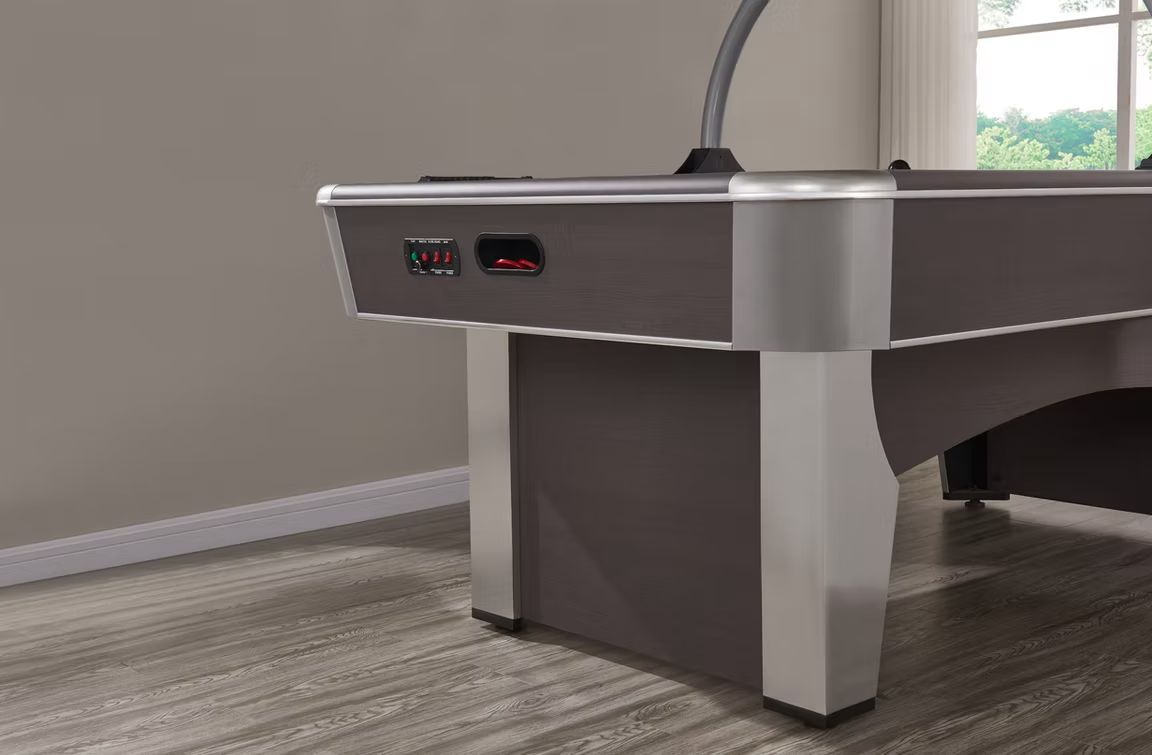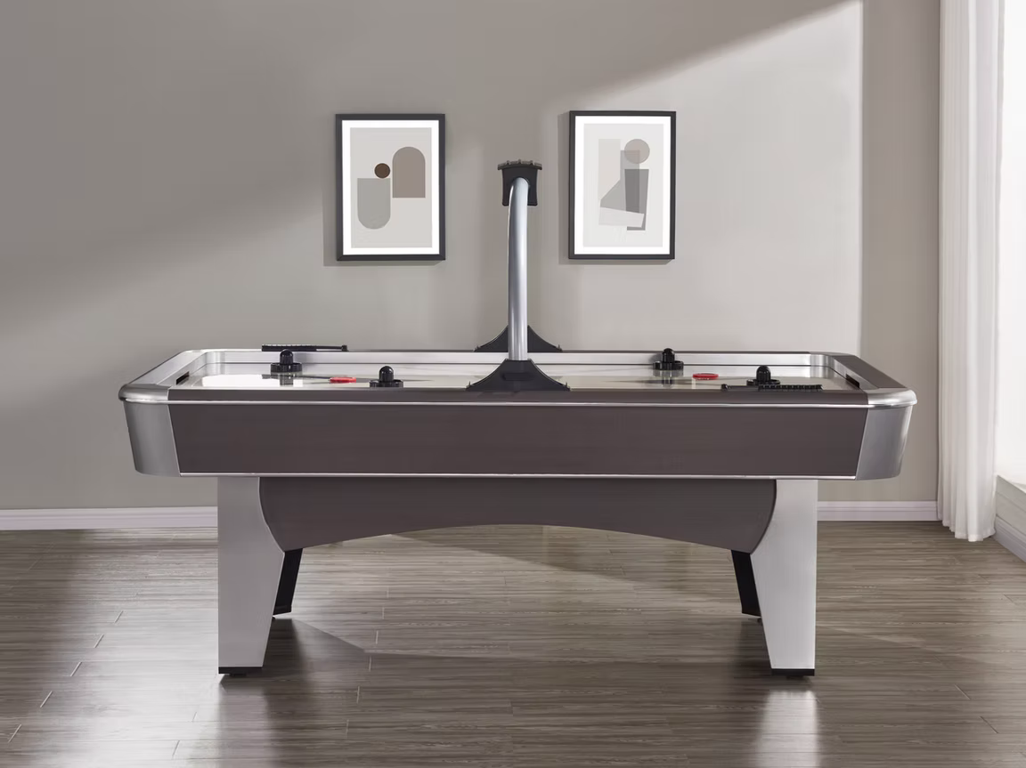 The futuristic design of the Jensen Air Hockey Table will make a sensational silver-toned statement with its Edgewater finish and hi-tech design. The powerful single fan delivers superior smoothness to your game, while the unique overhead arch provides a professional two-player electronic scoring system. This flagship table comes with the accessories needed to beam hockey to a whole new dimension.