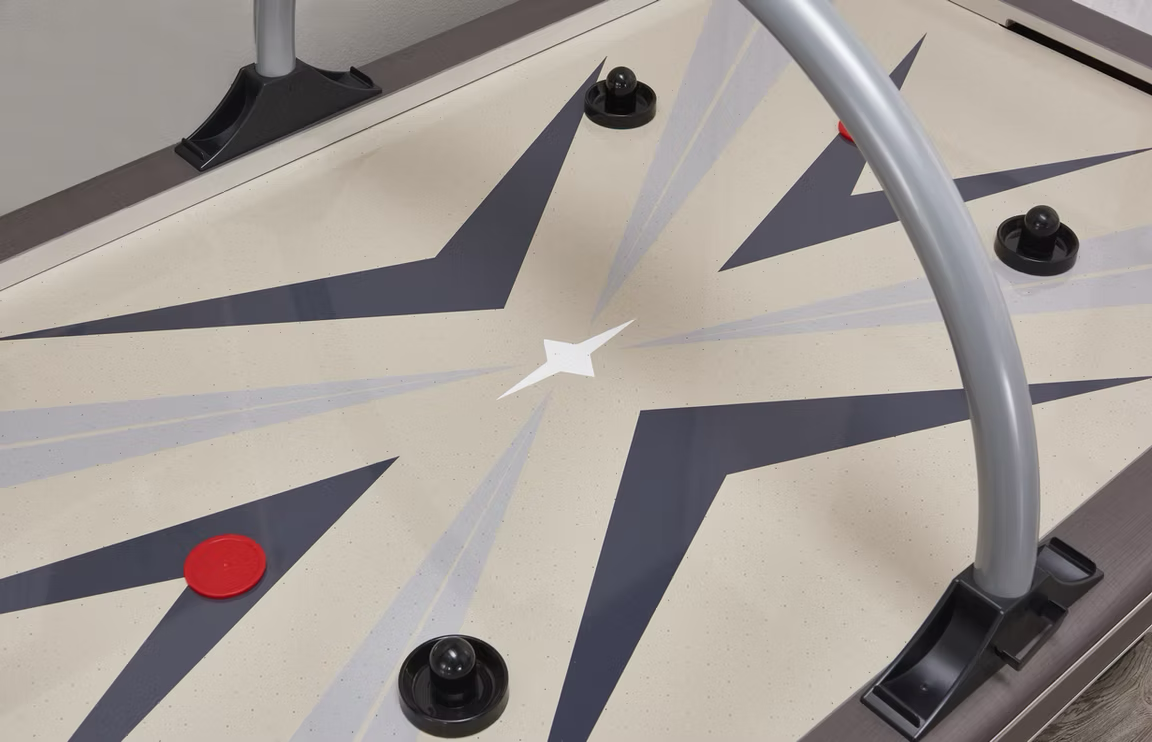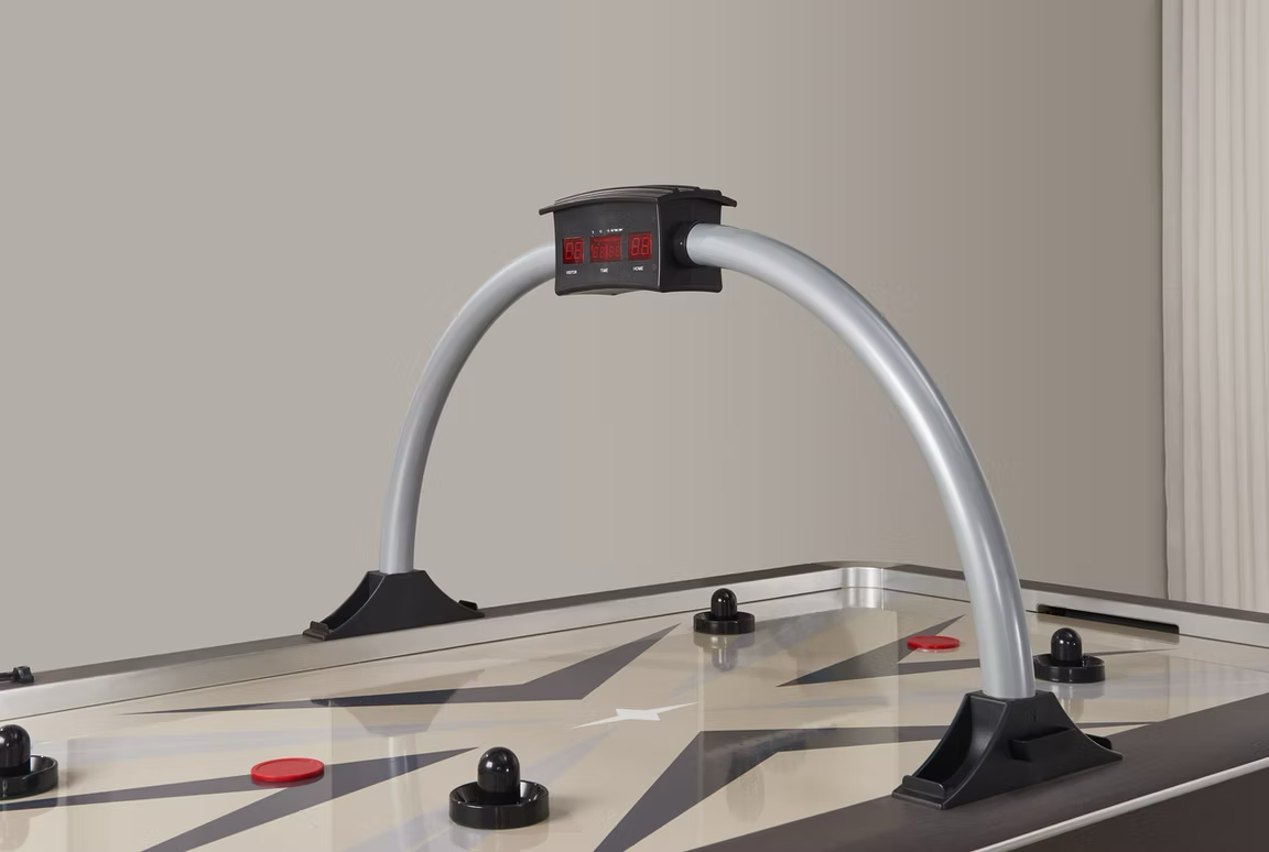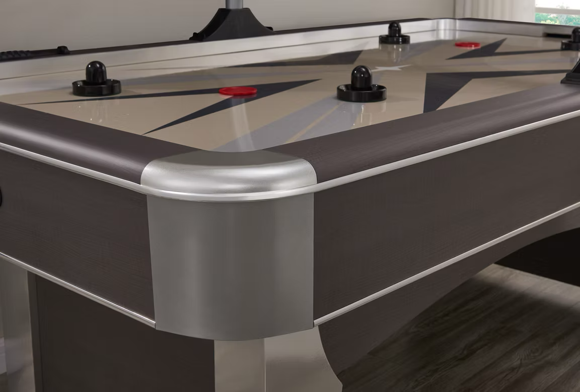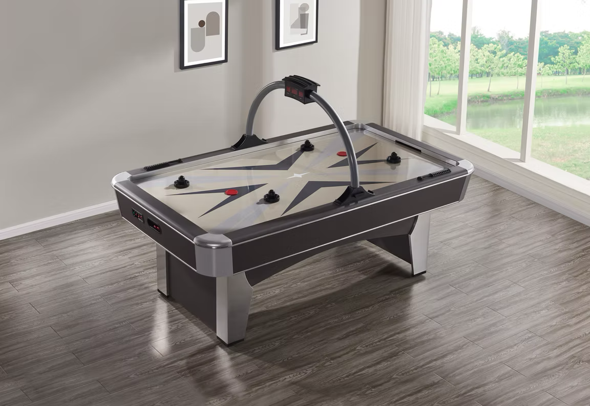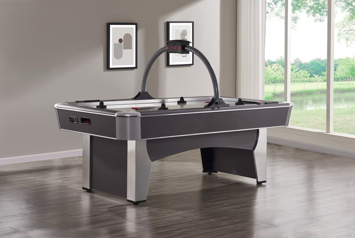 The futuristic design of the Jensen Air Hockey Table will make a sensational silver-toned statement with its Edgewater finish and hi-tech design. The powerful single fan delivers superior smoothness to your game, while the unique overhead arch provides a professional two-player electronic scoring system. This flagship table comes with the accessories needed to beam hockey to a whole new dimension.