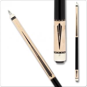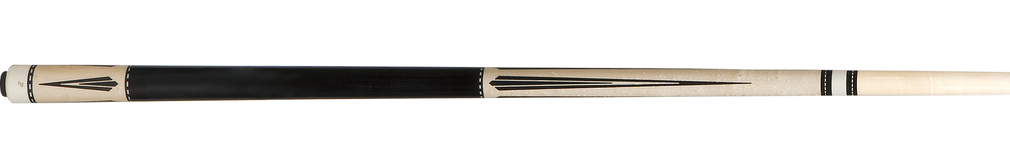 • No stain figured maple cue with ebony points and inlays. Ebony-stained maple wrap