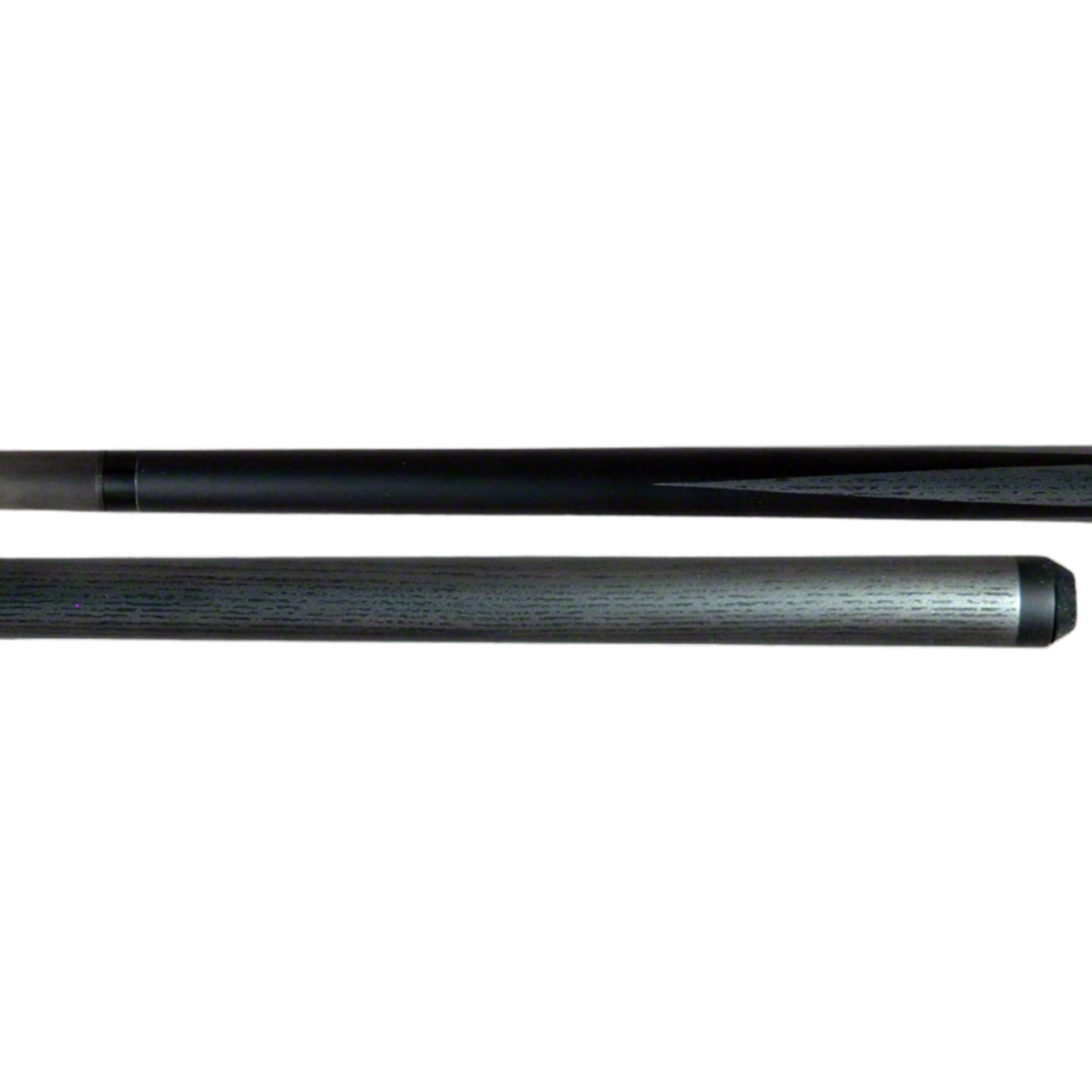 Bull Carbon LD5 Pool Cue. The LD5 has a  black stained maple forearm, the forearm has a 4 point grey wood design that extends to the  butt sleeve. Completing this cue is a Bull Carbon Fiber Shaft.