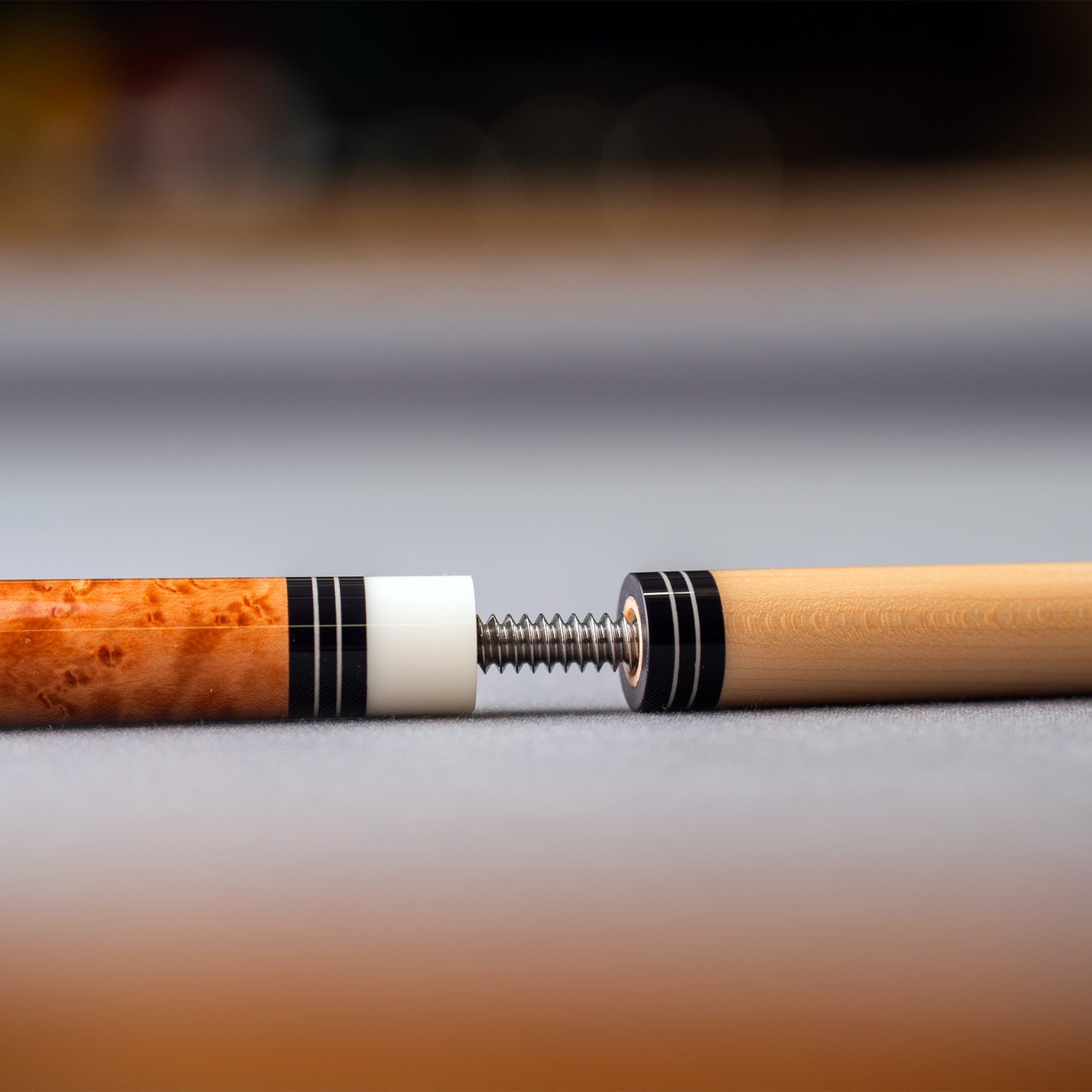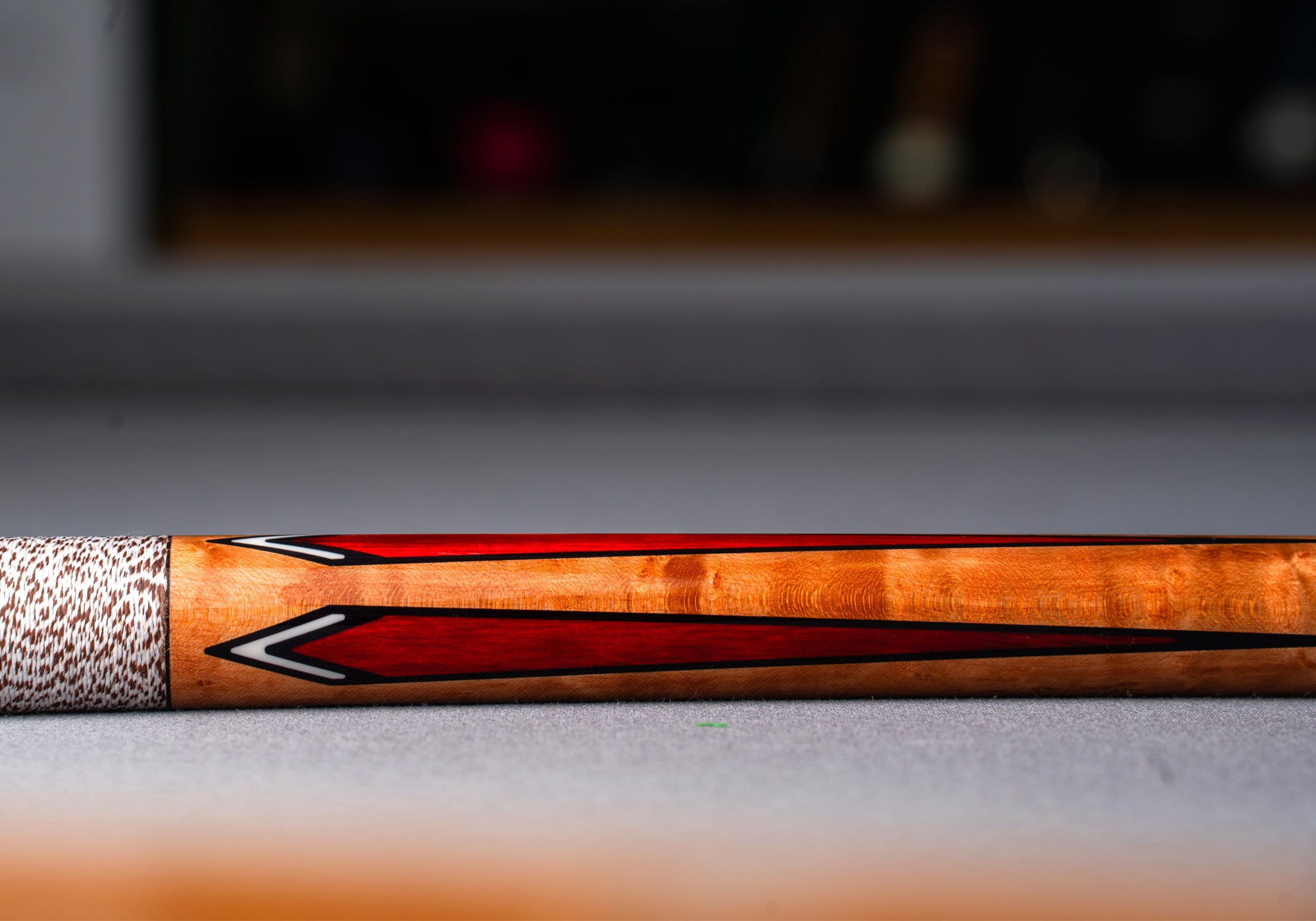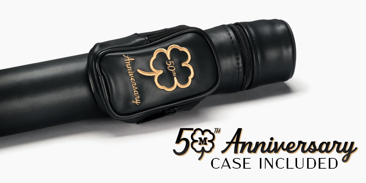 The MCD50K pays tribute to the D-23, one of the most beloved cues from the D-Series. Its signature rose motif returns through detailed laser engraving on the sleeve, framed by classic white oval inlays. While the inlay pattern remains true to the original, the floating points have been updated with bold red accents that echo the roses, creating a harmonious and modernized design. A light American cherry stain on the birdseye maple forearm and a traditional Irish linen wrap complete this elegant anniversary edition.