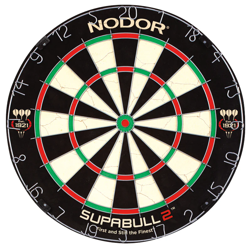 Top quality, superbly constructed, tournament standard sisal dartboard with high tensile traditional round wiring system complete with Supabull 2™ for reduced bounce-outs. Designed for very heavy play and built to last.