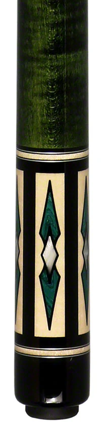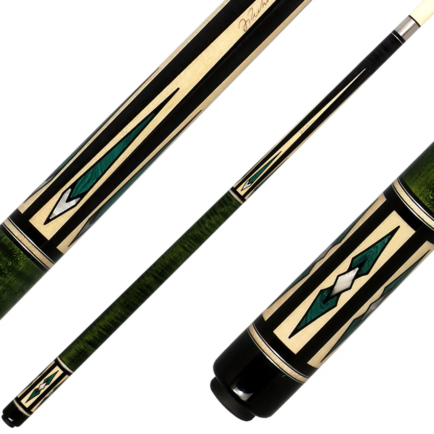 Experience elegance and luxury with the J Pechauer P11N Pro Series Pool Cue. Featuring an ebony-stained maple cue with a green-stained figured maple wrap section, this cue stands out with no-stain maple points and simulated ebony framed green Malachite and pearl inlays. Perfect for the sophisticated pool player.