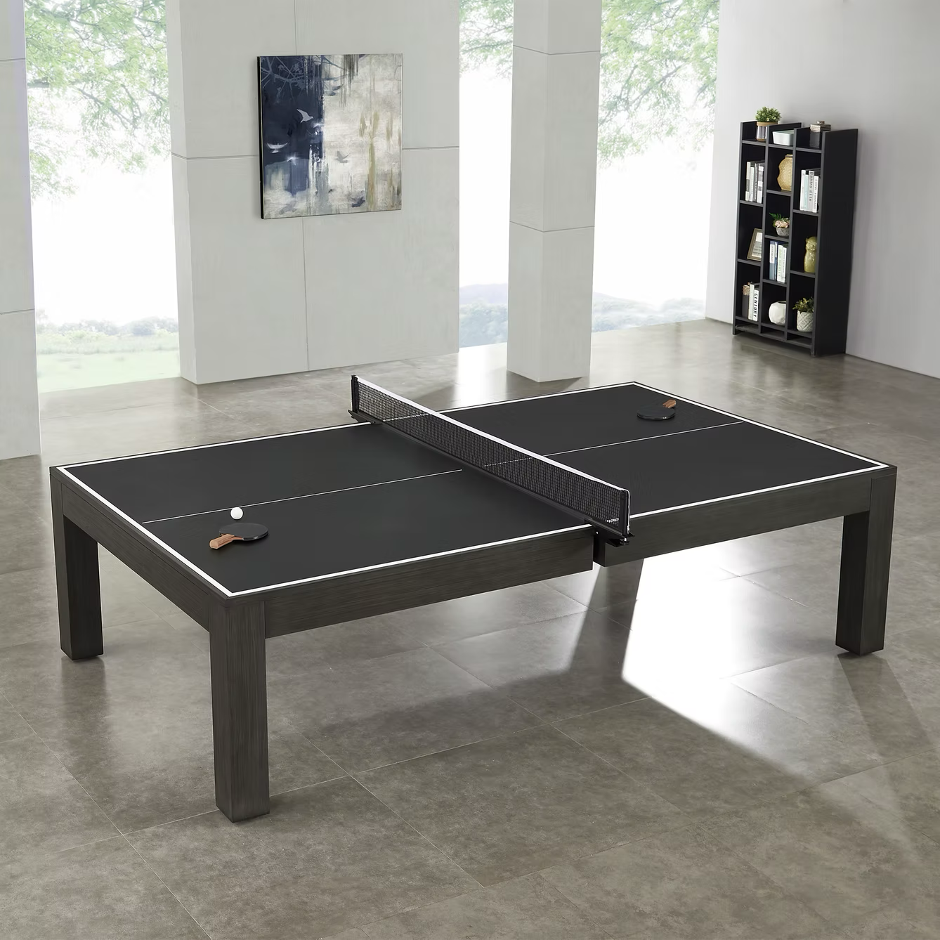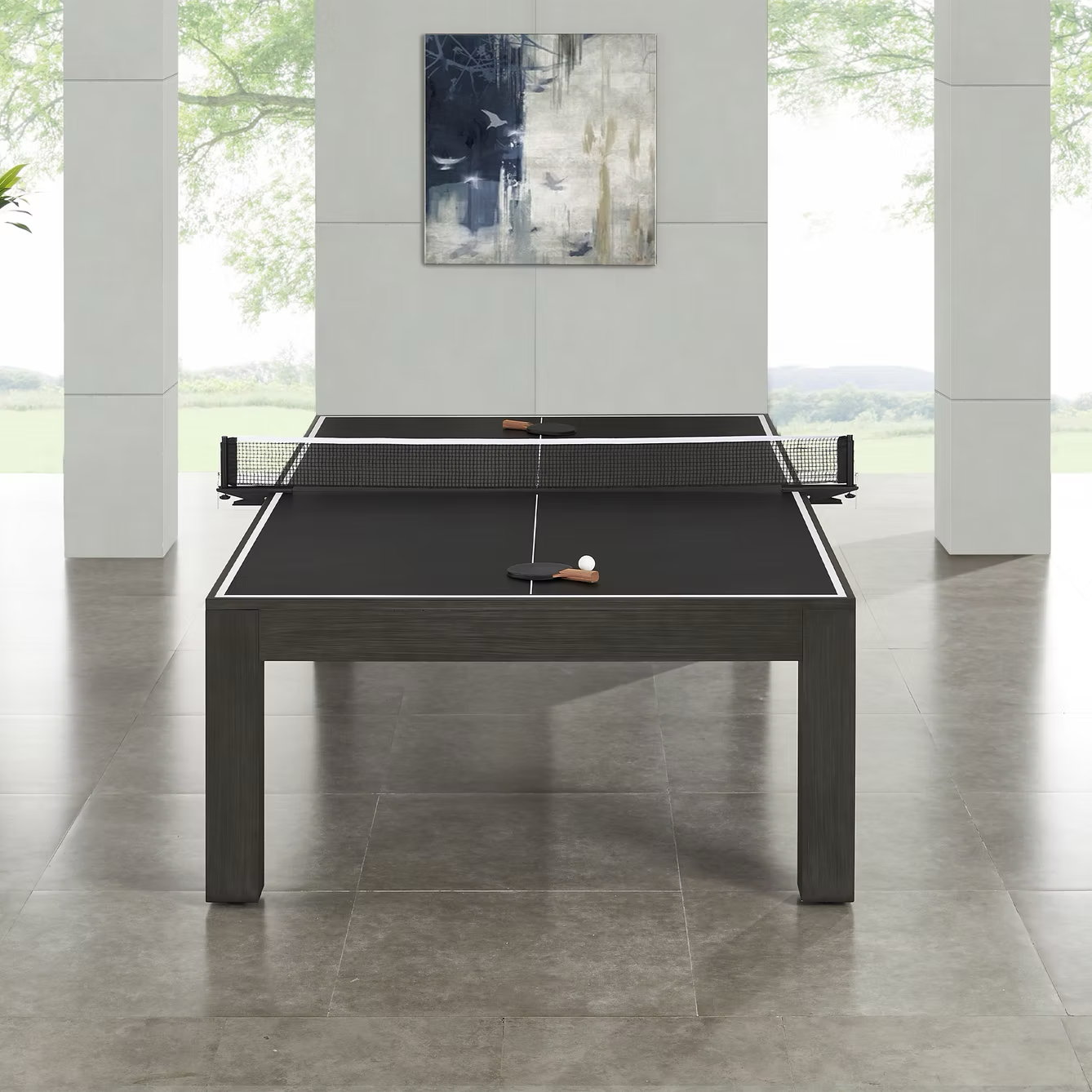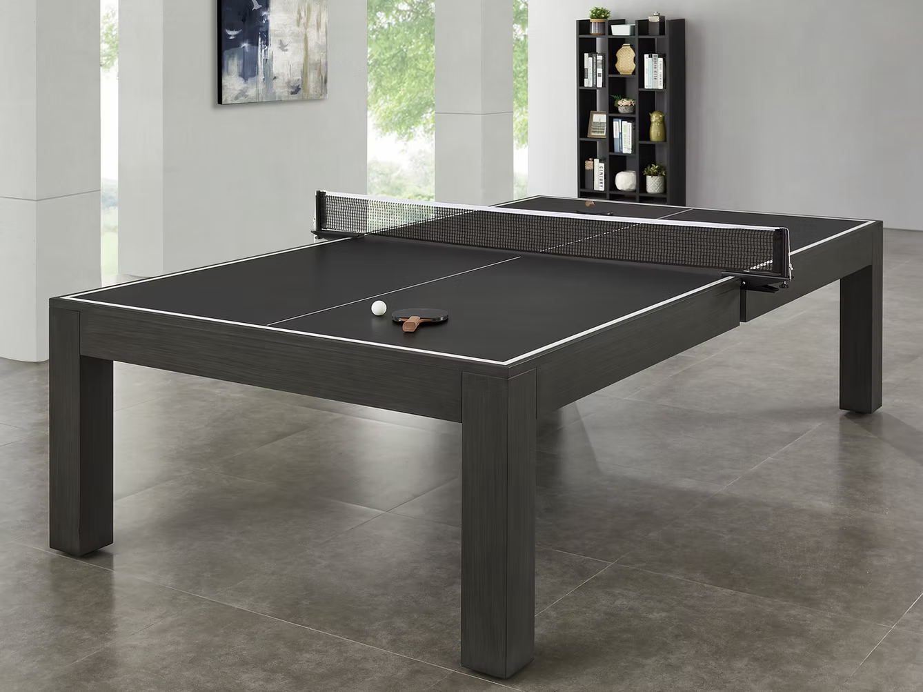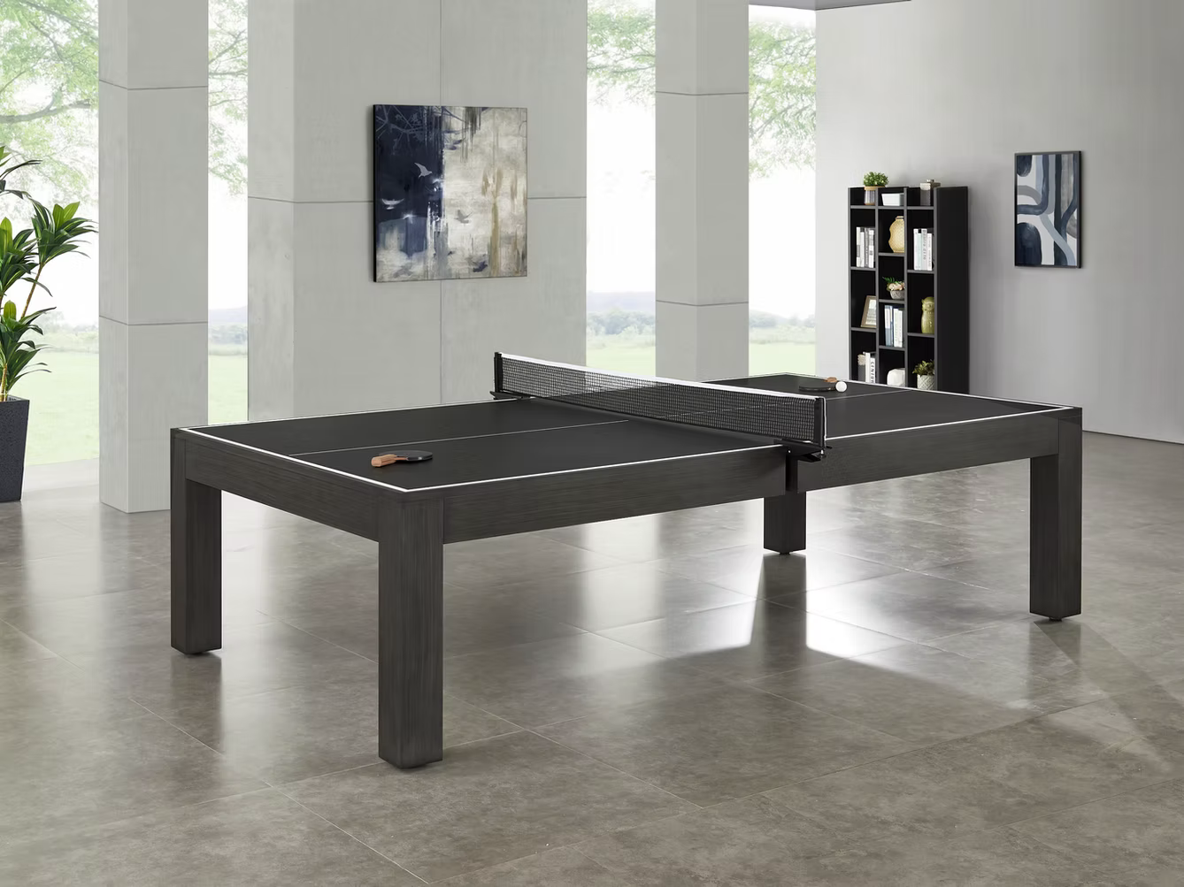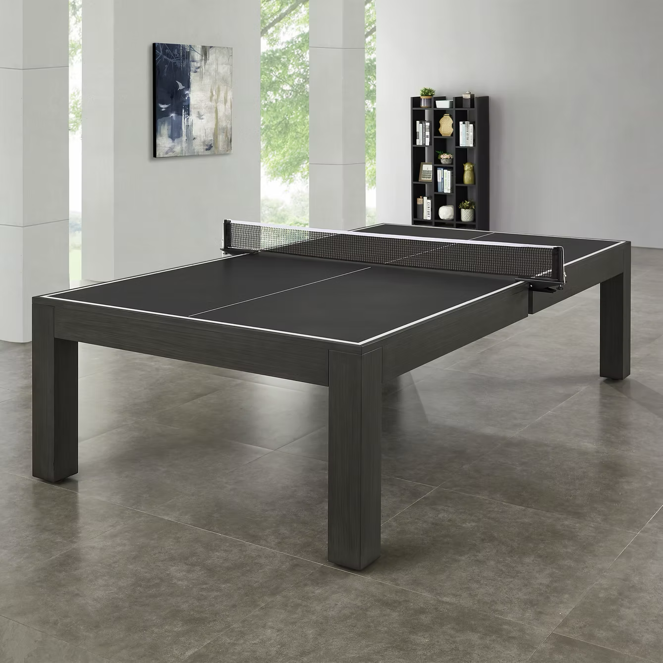 Transform your game room with the Penelope Tennis Table. Featuring our Kona finish and adjustable leg levelers, this table is the perfect means to flex your skills and show off your competitive edge. This table is masterfully crafted of Birch veneers, solid wood, and engineered wood so it is sturdy and will bring years of fun!
