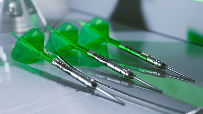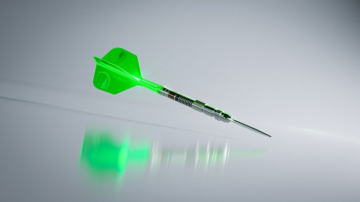 These darts have a 50-millimeter long barrel with a diameter of 7.10 millimeters, made of 95% tungsten. This ensures a sturdy, durable dart that feels comfortable in your hand. The barrel is straight and has a centre-weighted balance, meaning the weight is evenly distributed for optimal control. The grip is subtle with a milled pattern over the entire barrel, giving you just enough hold without feeling too rough (grip rating 2 out of 5).