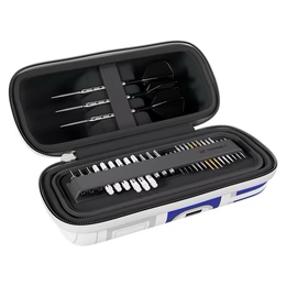 Featuring R2D2’s iconic white, blue, and silver styling, the wallet captures the look of the beloved droid while delivering performance-level organization. Designed to hold 6 fully assembled darts, it also features an internal tray system for 12 shafts and 15 Swiss Point tips—making it the only case in the galaxy to store Swiss Points securely. Extra compartments provide space for flights, K-Flex accessories, and tools, while a rigid shell and zip closure ensure everything stays protected on the move.