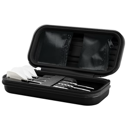Constructed with a durable hard shell, the Takoma keeps your darts safe and protected. The scratch-resistant interior lining secures 3 fully assembled darts, while zip pockets provide space for additional accessories such as spare flights, shafts, Swiss Points, or your Swiss Point tool — combining style and practicality in one premium case.