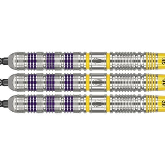 Introducing the Luke Littler Loadout Steel Tip Darts, a collaborative design with the 2024 PDC World Championship finalist. The dart set includes a 90% Tungsten straight barrel 52mm in length, featuring radial grooves for enhanced finger grip. Throughout the sleek design, you'll find small pops within the grooves of Nuke’s signature purple and yellow colours.