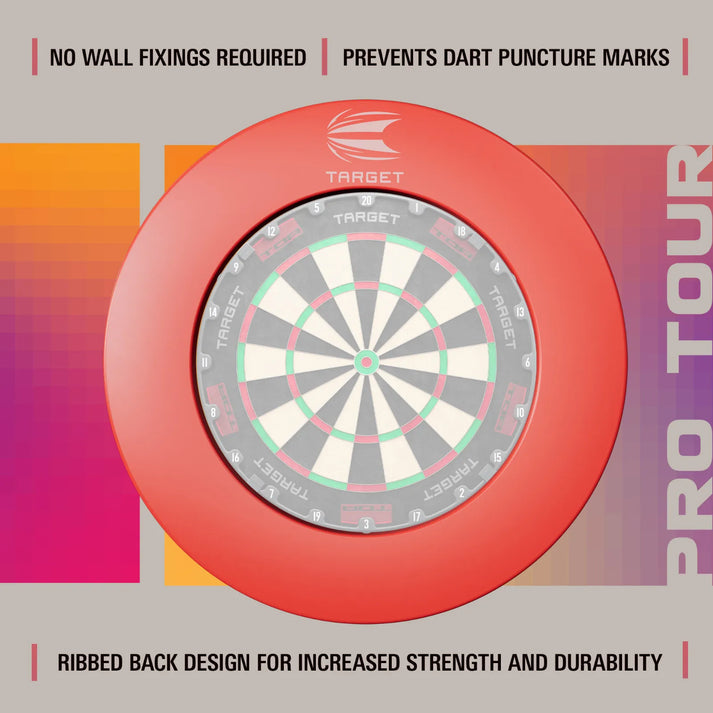 The Target Pro Tour Surround has been specifically developed to offer the best protection from stray darts whilst embodying Target's distinctive design aesthetic.