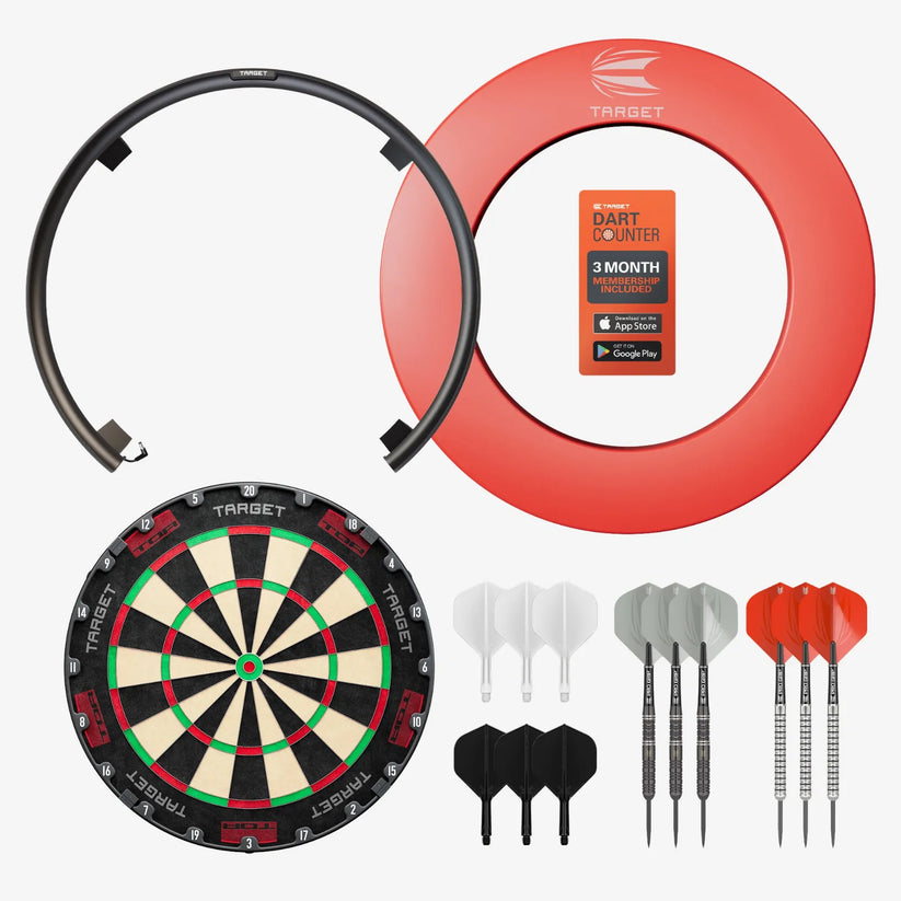 Take your home darts setup to professional heights with The Omni Home Bundle—a premium bundle built for serious players. Featuring the game-changing Omni Auto Scoring System, the WDF-approved TOR dartboard, and a complete selection of elite steel tip darts and accessories, this setup brings the future of darts into your home.