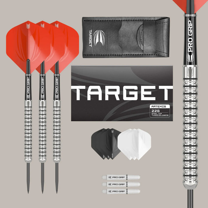 Target Darts have crafted the Ares and Artemis Tungsten dart sets, each offering radial grooved barrels in a variety of weights for excellent grip and a beautifully balanced experience—perfect for both darts enthusiasts and players new to the sport.
