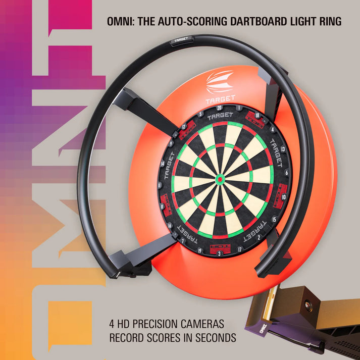 Omni is the ultimate auto-scoring dartboard light ring, eliminating manual scoring and transforming how you play. Equipped with four HD precision cameras, it tracks every dart with exceptional accuracy, instantly calculating scores and even detecting bounce-outs.