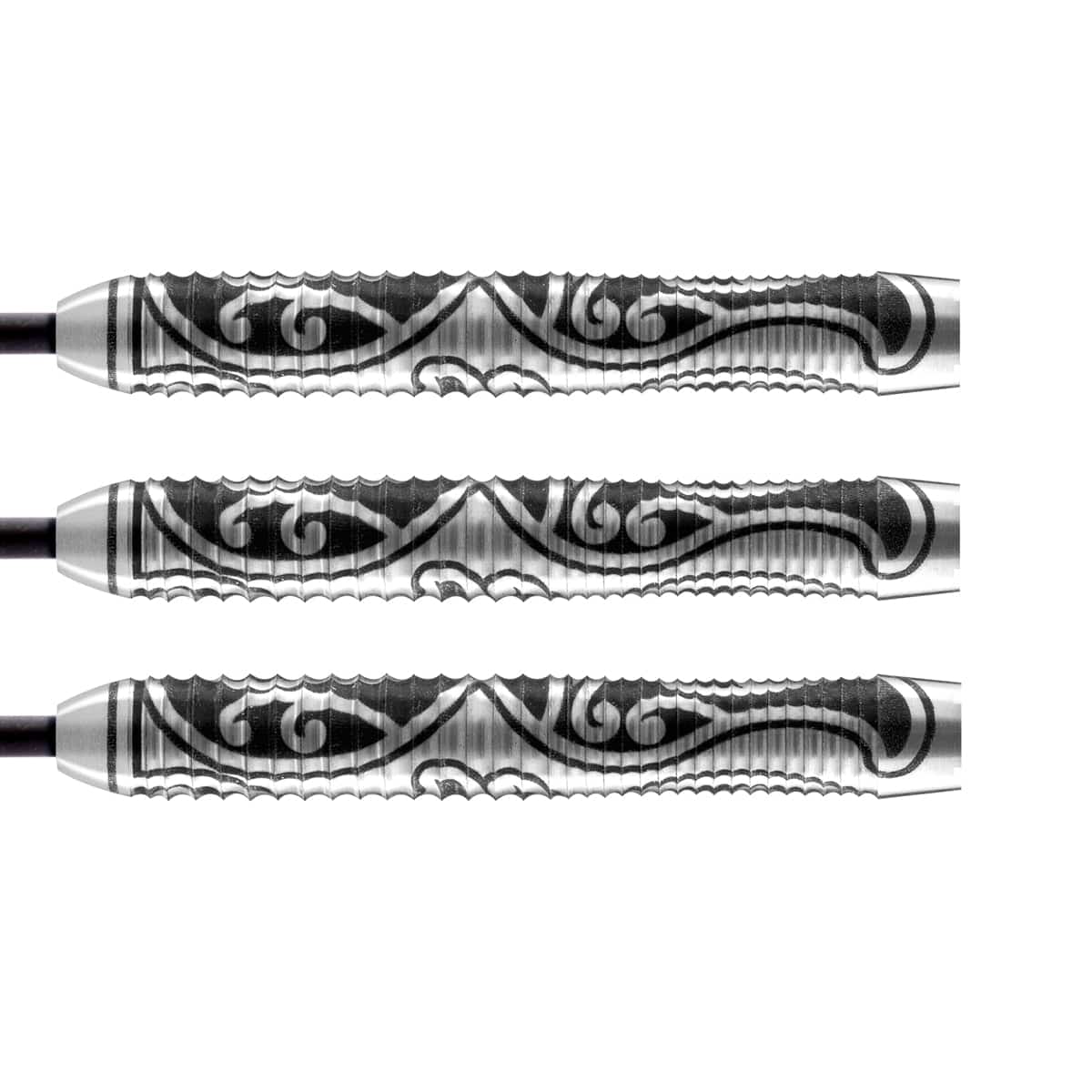 You've always played things your way, and Tipu - meaning to grow and prosper in Te Reo Māori - will help you play even better. This front weighted, 80% tungsten dart features a robust, tightly packed ring grip from nose-to-tail, to stop slippage. Forever the non-conformist, Tipu won't tie you down to a single grip style - you'll get a confident, accurate throw from anywhere along the barrel. Warrior Tipu is adorned with cinder grip™ in a contemporary tribal tattoo design, which adds superfine traction and control in distinctive Shot Darts style. It's the dart that fits the way you play.