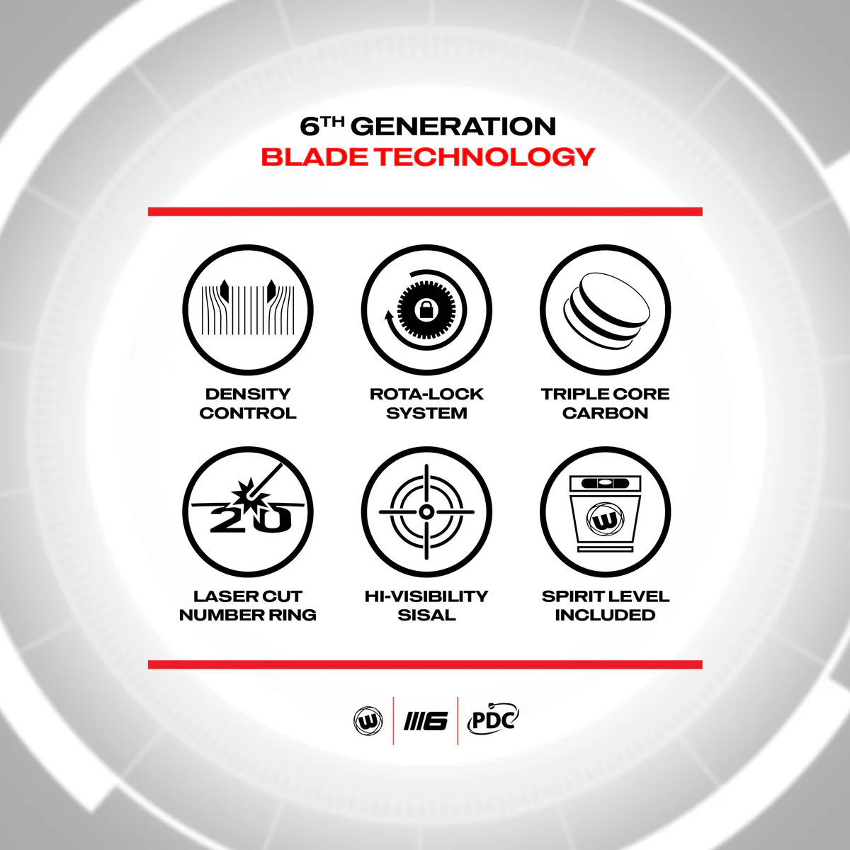 The Blade 6 Triple Core dartboard celebrates the latest PDC Exclusive Endorsement, where the world’s best professionals will now play the most technically advanced dartboard available, creating thousands of new stories.